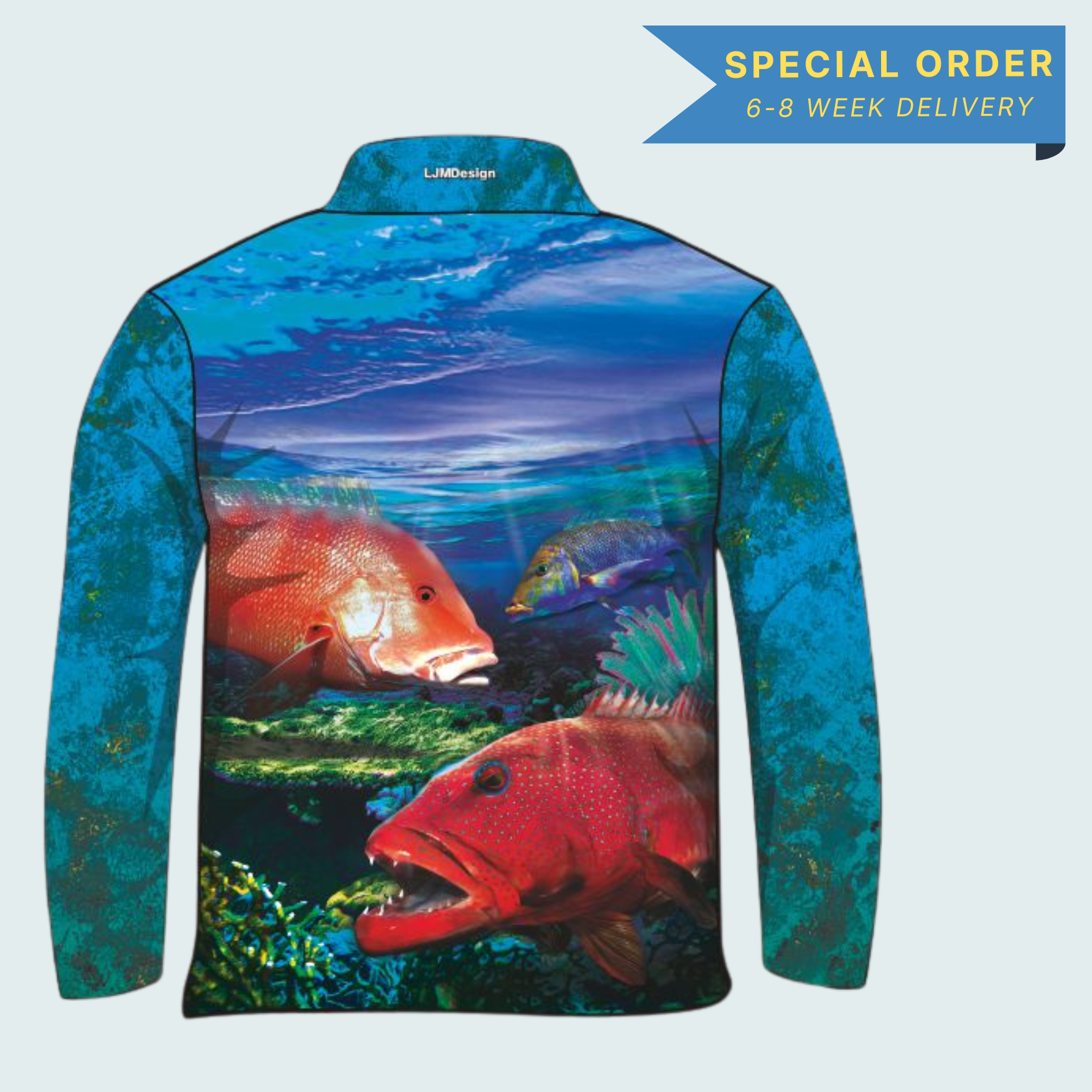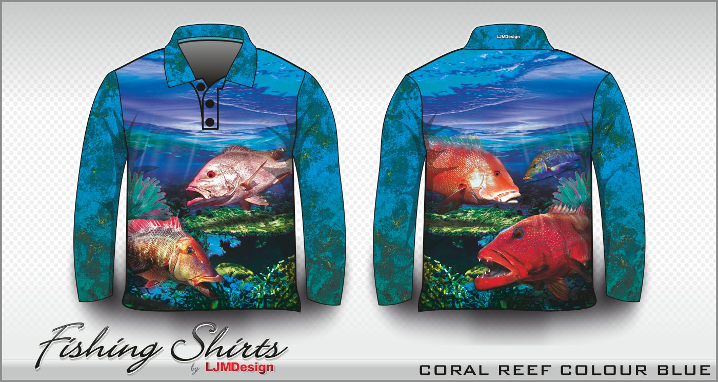 Coral Reef Blue Fishing Fishing Shirts can be ordered exactly as you want!