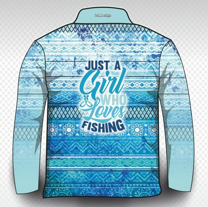 Rock this stunning Aztec Bikini Blue fishing shirt and let your passion shine. Featuring eye-catching geometric patterns inspired by contemporary swimwear, it's designed for adventurous women who live for the thrill of the catch. The "Just a girl who loves fishing" message celebrates your dedication to the sport, whether you're tackling freshwater streams or saltwater adventures. Bold, comfortable, and unapologetically you—this shirt proves that style and serious fishing go hand in hand.