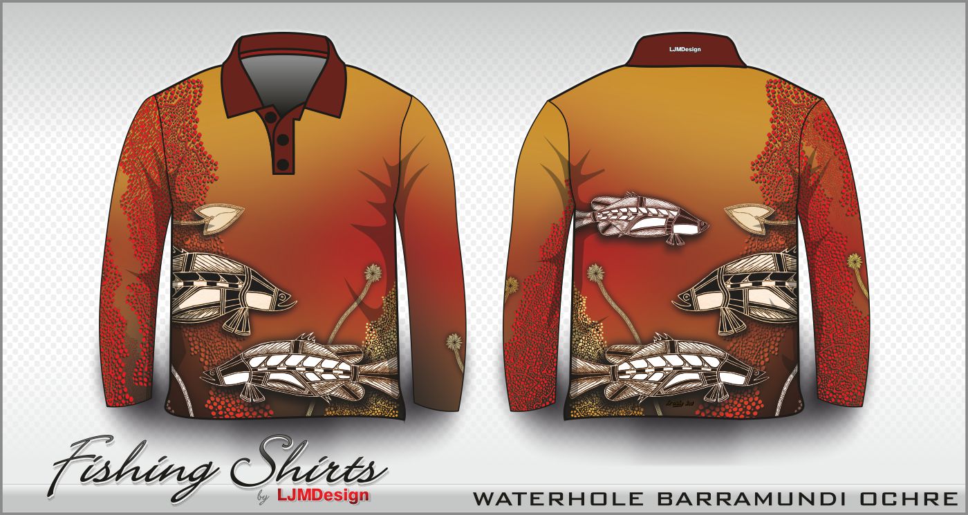 Waterhole Barramundi Indigenous Art Fishing Fishing Shirts can be ordered exactly as you want!